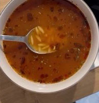 Zum Abendessen gab es eine wärmende Tomatensuppe – genau das Richtige nach dem frischen Wind am Meer.
